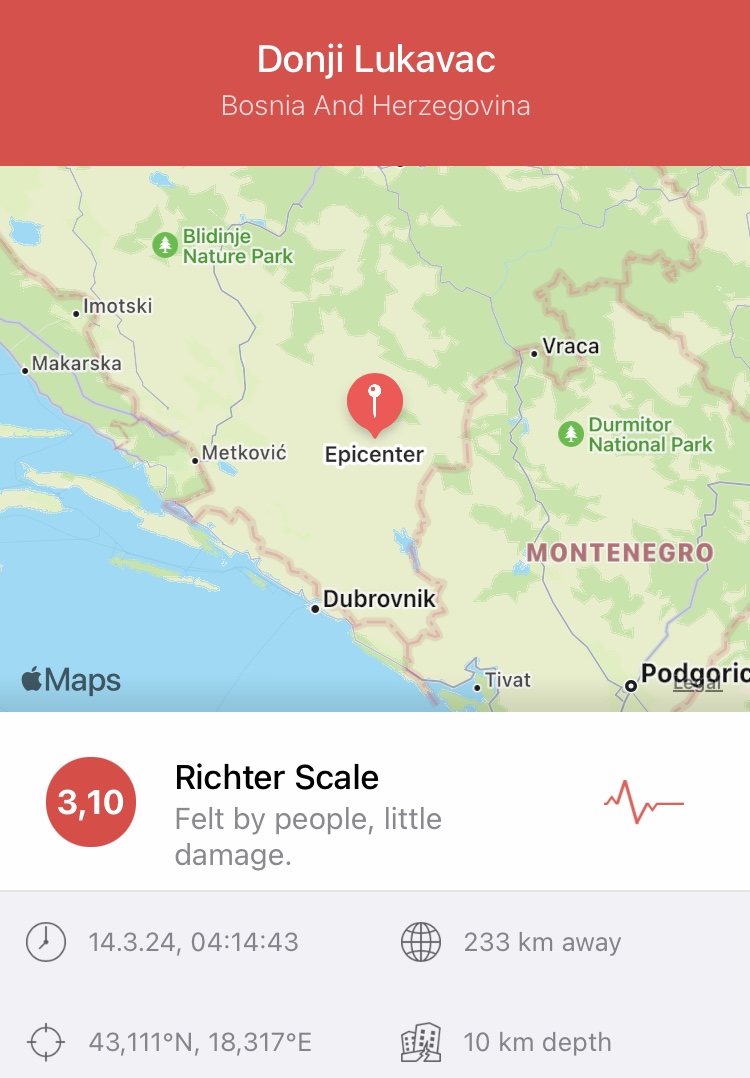 Pak minuta me pare nje tjeter temert ka goditur dhe Bosnje dhe Hercegovinen.