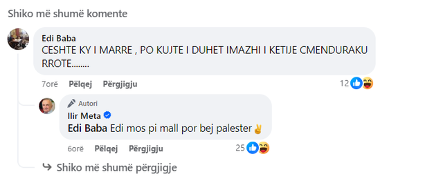 “Edi, mos pi mall, por bëj palestër”, i kundërpërgjigjet Meta komentuesit.