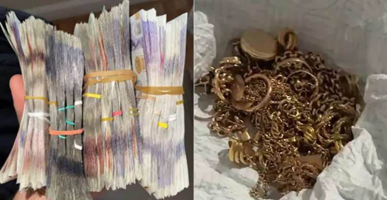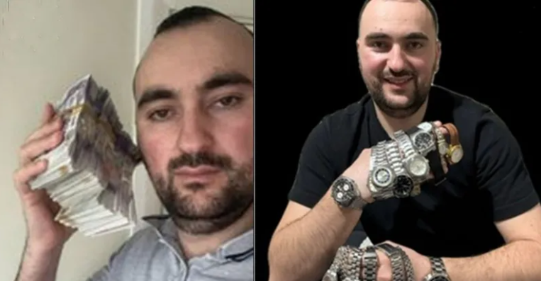 Sidorjan Lleshi në foto me sendet që banda vodhi nga shtëpitë