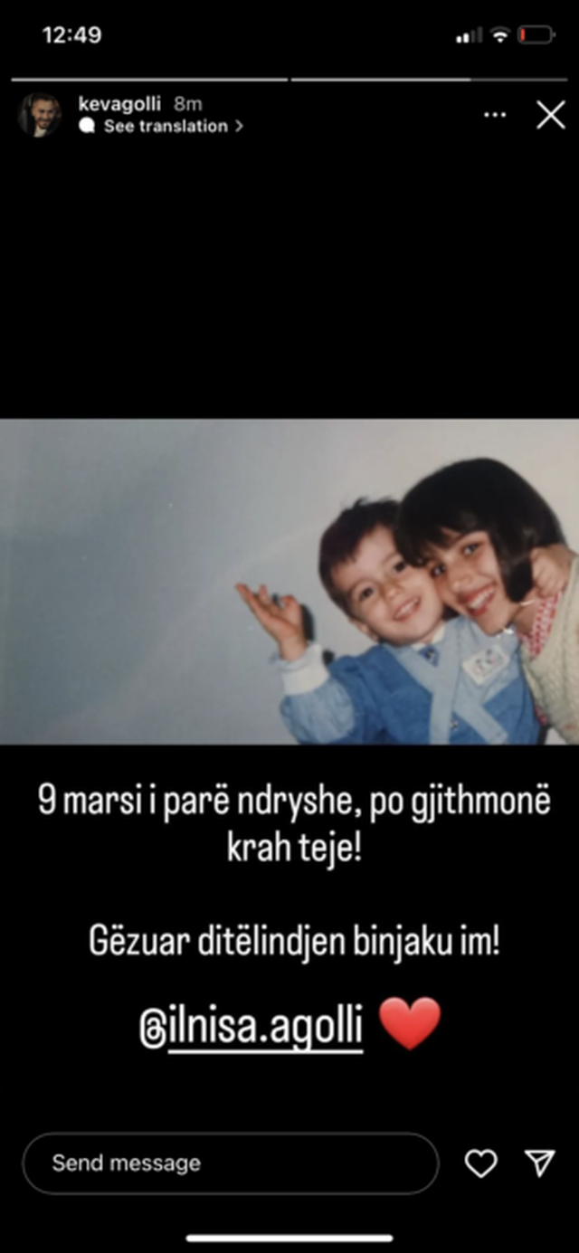 Nëpërmjet një postimi në Instagram, shoqëruar me një fotografi të tyren në moshë fare të vogël ai shkruan:” 9 Marsi i parë ndryshe por gjithmonë krah teje! Gëzuar ditëlindjen binjaku im!