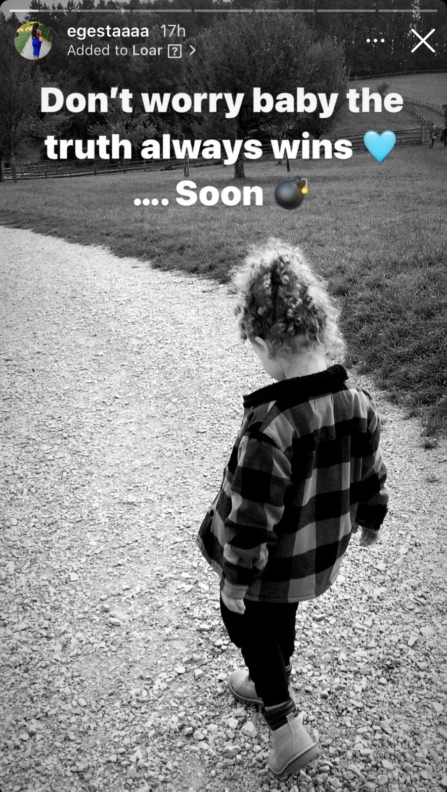 “Për të gjitha portalet, gazetat, dhe ‘tv shows’, gjithë gazetarët në Shqipëri dhe Kosovë! Dje pashë prapë një tjetër foto virale të djalit tim dhe do të doja t’ju kërkoja të përmbaheni nga postimi i fotove të fëmijës tim nën 18 vjeç. Ai nuk ekziston në jetën e tij. Vetëm mua me përket kujdestaria, e drejta dhe vendimet për Loarin. Fytyra duhet të fshihet/ censurohet, përndryshe do të marr masa ligjore! Është diçka për t’u marrë parasysh, se bëhet fjalë për një fëmijë të mitur dhe nuk duhet të abuzohet me fytyrën e tij për raportime të tilla degraduese. Nuk është as moralisht as ligjërisht e justifikueshme dhe ju ndaloj të abuzoni me fëmijën tim për histori publike dhe është absurde me përdor për ‘show’”, shkroi Egesta.