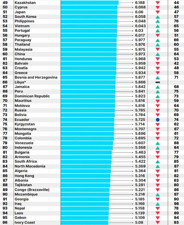 Në dhjetëshen e parë gjejmë edhe Suedinë, Izraelin, Holandën, Norvegjinë, Luksemburgun, Zvicrën dhe Australinë.