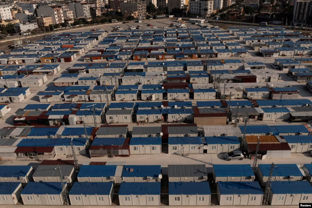 - Një pamje nga lart tregon një qytet kontejnerësh pas tërmetit të vitit të kaluar, në Iskenderun, shkurt 2024.