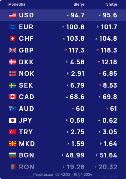 ndërsa franga zvicerane do blihet me 103.8 lekë dhe do shitet me 104.8 lekë.