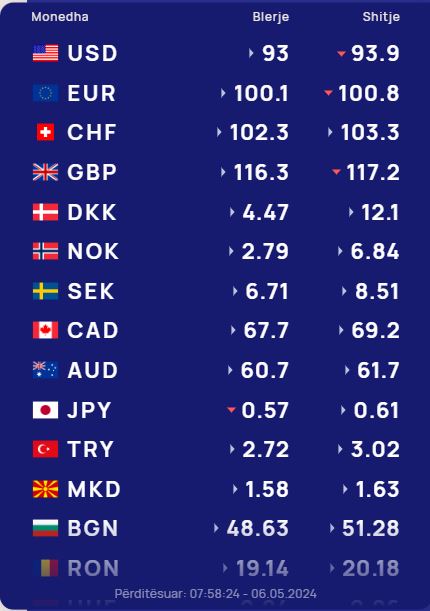Në tregun e këmbimit valutor sot një dollar do blihet me 93 lekë dhe do shitet me 93.9 lekë.