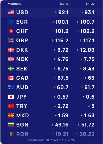Ndërkohë monedha evropiane euro do blihet me 100.1 lekë dhe do shitet me 100.7 lekë.