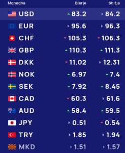 Ndërsa paundi britanik do blihet me 110.3 lekë dhe do shitet me 111.3 lekë.