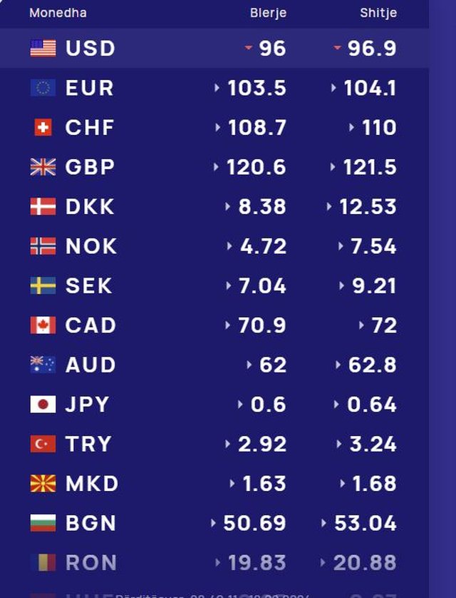 Më poshtë, po sjellim të dhënat e këmbimin valutor, për të gjitha monedhat e huaja
