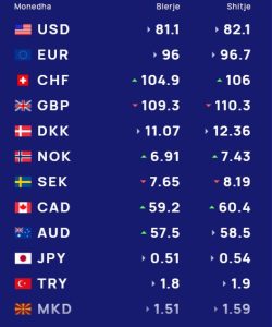 Ndërsa paundi britanik do blihet me 109.3 lekë dhe do shitet me 110.3 lekë.