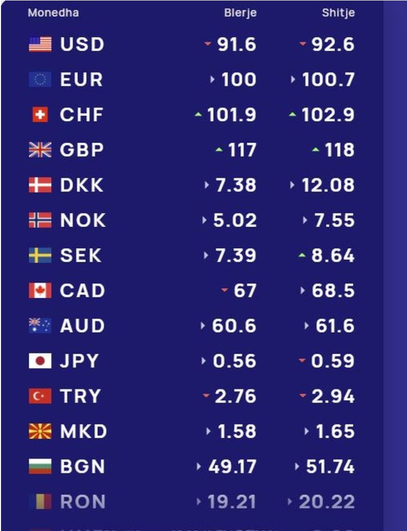 Franga zvicerane këmbehet në blerje me 101.9 lekë, ndërsa në shitje me 102.9 lekë.