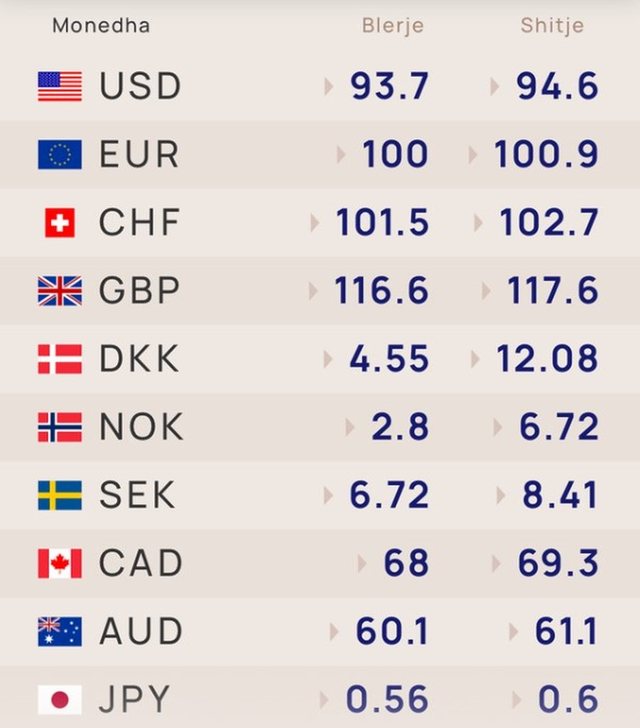 Franga zvicerane, këmbehet në blerje me 101.5 lekë, ndërsa në shitje me 102.7 lekë.