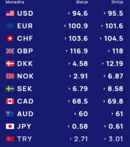 Euro sot blihet me 100.9 lekë, ndërsa në shitje me 101.6 lekë.
