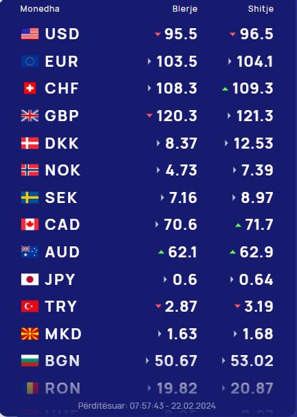 Ndërsa franga zvicerane do blihet me 108.3 lekë dhe do shitet me 109.3 lekë.