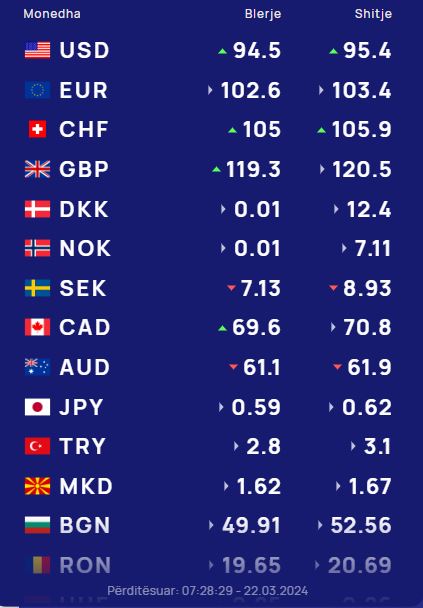 Ndërsa franga zvicerane do blihet me 105 lekë dhe do shitet me 106.1 lekë.