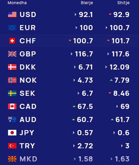 Ndërkohë monedha evropiane euro do blihet me 100 lekë dhe do shitet me 100.7 lekë.