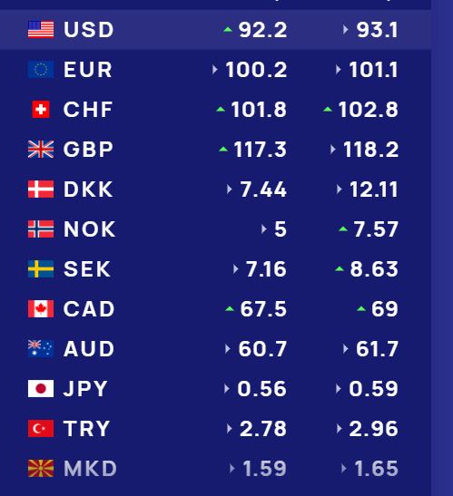 Franga zvicerane sot në tregun shqiptar do blihet me 101.8 lekë dhe do shitet me 102.8 lekë.