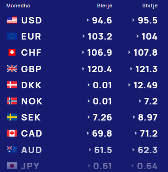 Më poshtë, po sjellim të dhënat e këmbimin valutor, për të gjitha monedhat e huaja: