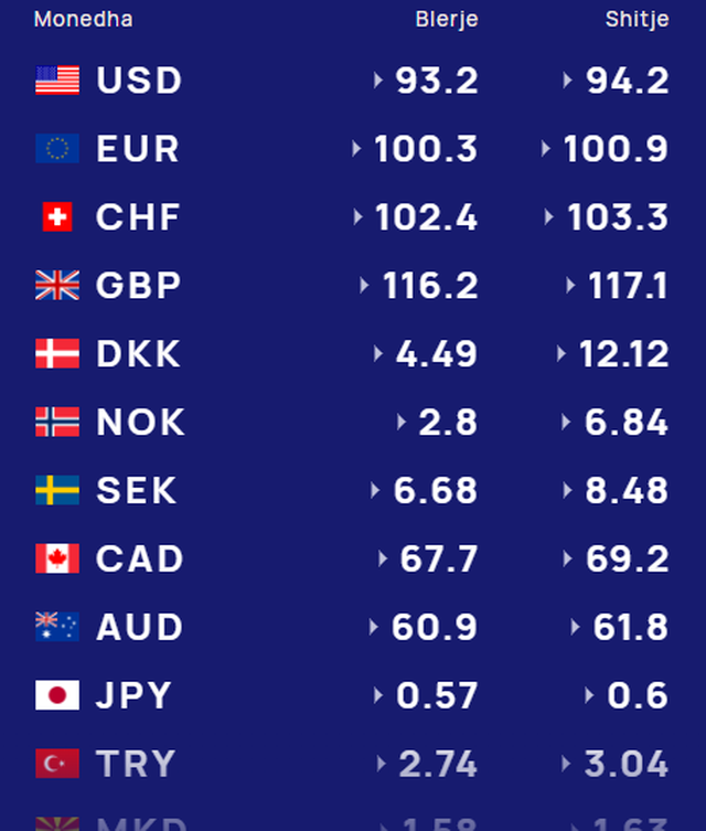 Euro sot blihet me 100.3 lekë, ndërsa në shitje me 100.9 lekë.