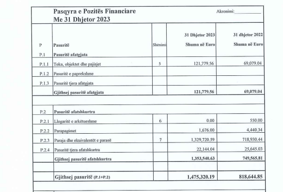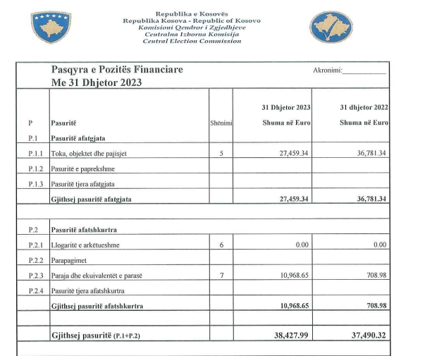 Në bazë të këtij raporti partia e Kurtit pasuri gjatë vitit 2023 ka 1,475,329.19.