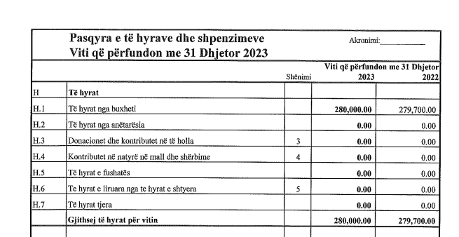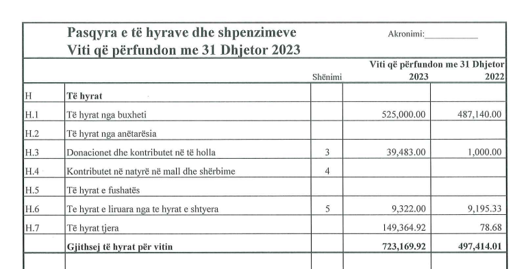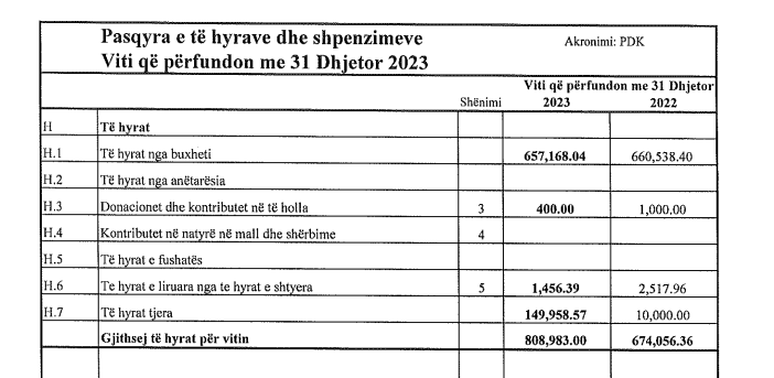 Të hyra brenda vitit 2023, LDK ka pasur 723,169.92,