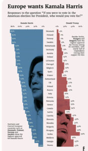 Sipas një ankete të korrespodentëve evropian, sondazhet tregojnë se shumica e evropianëve do të preferonin Kamala Harris mbi Donald Trump.