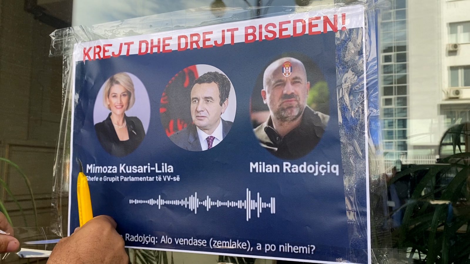 “Në vend se ta festojmë ne sot 25 vjetorin, çlirimin e Prishtinës, Kosovës, Mimoza Kusari-Lila, neve na ka ngucur edhe na ka ofenduar duke biseduar me këtë kriminelin, Milanin, ky është kriminel dhe ka biseduar me urdhrin e Albin Kurtit, atë e ka shef, dhe me urdhrin e tij ka biseduar se e ka shef. Albin Kurti e ka flamurin kombëtar, për bashkim kombëtar me arsye e kam qitë duke e shikuar dhe duhet ta shkarkojë këtë ditë të çlirimit të Kosovës, ta shkarkojë Mimozën për arsye shumë të njohura se Mimoza ka incizime që ka folur me këtë kriminelin. Kurti e ka shansen historike ta shkarkojë Mimozën”, tha ai duke mos dashur ta tregojë emrin.