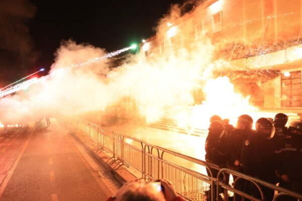 Rama ka ndarë një pamje të Xhamisë së Namazgjasë në rrjetin social “X”, teksa kjo e fundit është e rrethuar nga përplasja mes protestuesve dhe policisë, nën renë e gazit lotsjellës.