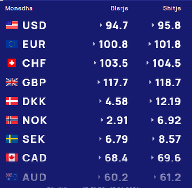 Më poshtë, po sjellim të dhënat e këmbimin valutor, për të gjitha monedhat e huaja: