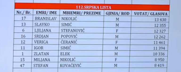 Lista Serbe ka marrë 9 deputetë.