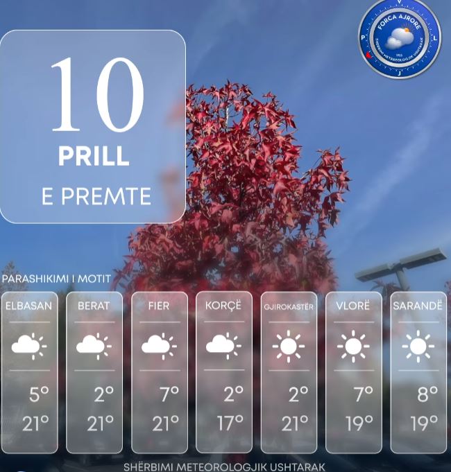 Ditën e sotme vendi ynë do të ndikohet nga kushte atmosferike të qëndrueshme.