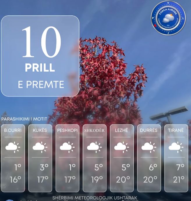 Sipas Shërbimit Meteorologjik Ushtarak moti parashikohet me alternime kthjellimesh dhe vranësira kalimtare kryesisht pas orëve të pasdites.