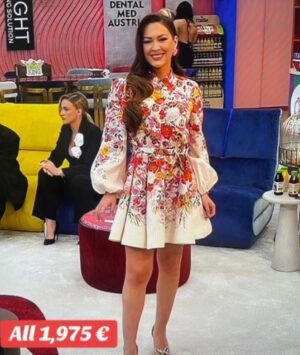 Spektaklin e djeshëm për “look-un” e saj janë shpenzuar rreth 2 mijë euro, ku përfshihet fustani pranveror i firmës “Zimmermann” 995 euro, këpucët “Aquazzura” 850 euro dhe vathët “Shushuitong Crystal” 130 euro.