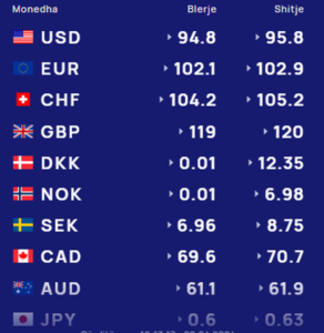 Euro blihet me 102.1 lekë dhe shitet 102.9 lekë.