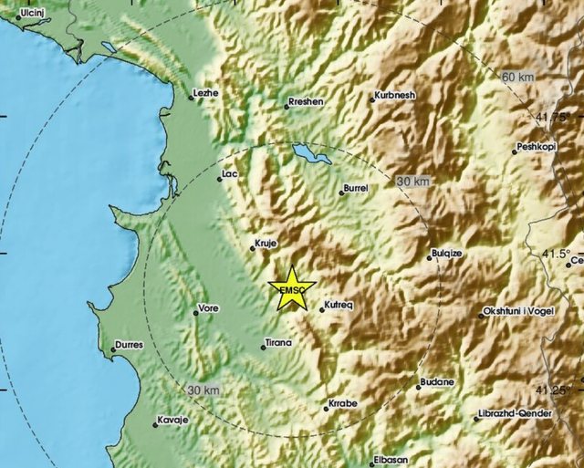 Sipas informacioneve të para, tërmeti ka qenë i magnitudës 2.4 të shkallës Rihter, 13 kilometra larg Tiranës dhe në një thellësi prej 16 km.