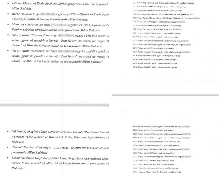 Tashmë është publikuar lista e gjatë e pronave që janë konfiskuar, ku përfshihen vila, banesa, dhjetëra vetura, restorant e të tjera.