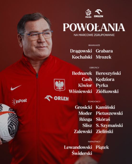 Nikola Zalevski është po ashtu pjesë e listës, edhe pse ndaj Shqipërisë do të mungojë. Lojtari i Atalantës në Seria A ka plotësuar numrin e kartonëve të verdhë. Në Poloni i bëjnë llogaritë për finalen e “play off” të Botërorit, duke projektuar kualifikimin ndaj Shqipërisë.