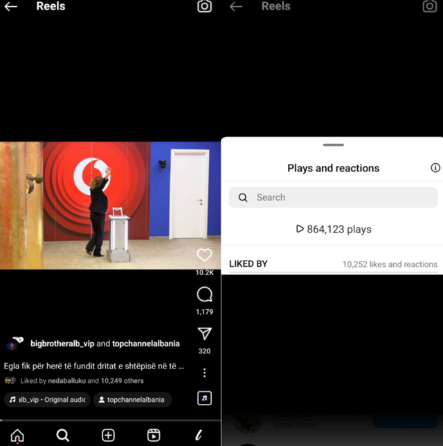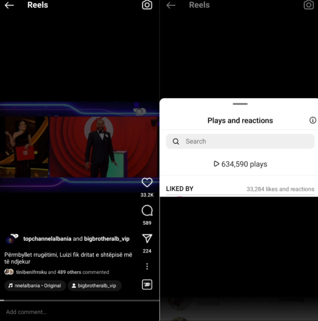 Postimi në Instagram i Luizit teksa fik dritat e shtëpisë së BBV 2, i publikuar nga faqja zyrtare e “Big Brother VIP”, numëron 33 mijë pëlqime dhe rreth 650 mijë shikime.