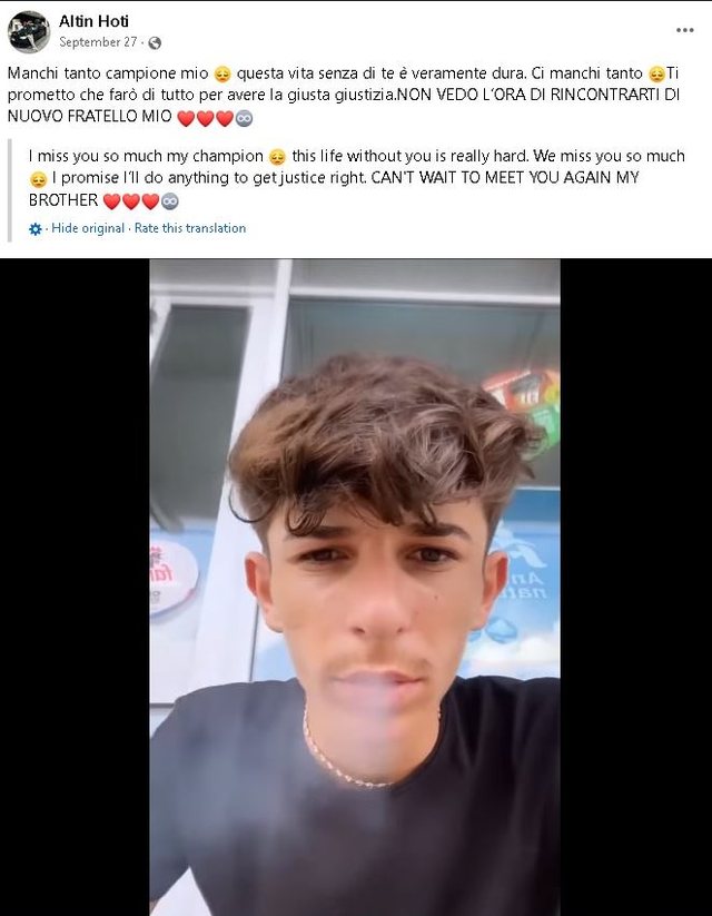Në muajin shtator, Altin Hoti, i cili vdiq nga aksidenti i sotëm, bëri një postim rrëqethës në rrjetet sociale. Më 27 shtator, ai shkruante: “Më mungon shumë kampioni im. Kjo jetë pa ty është vërtetë e vështirë. Na mungon shumë. Të premtoj se do bëj gjithçka për të pasur drejtësinë e duhur. Mezi pres të të ritakoj vëllai im”.