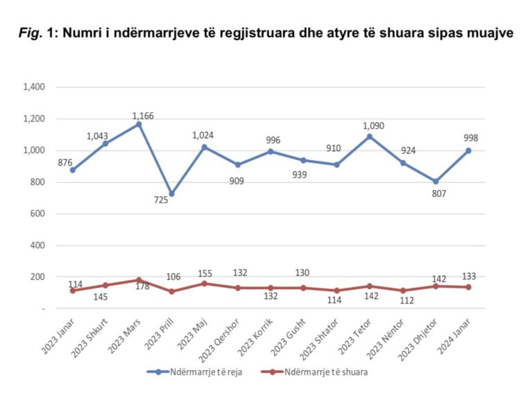 “Në janar 2024 janë hapur 998 biznese të reja, ndërsa janë shuar 133 sosh. Në vitin 2023 nëse e marrim si total, janë regjistruar gjithsej 11,409 biznese të reja”.