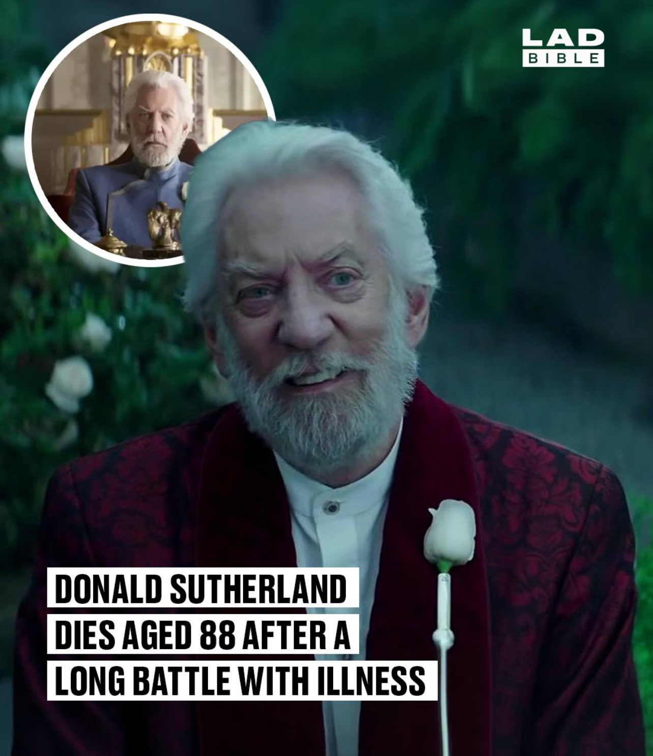 Donald Sutherland, aktori i dashur që luajti në shumë filma nga The Dirty Dozen, MASH dhe Klute te Animal House dhe Ordinary People te Pride & Prejudice dhe The Hunger Games dhe fitoi një Emmy për Citizen X, vdiq të enjten në Miami pas një kohe të gjatë i sëmurë. Ai ishte 88 vjeç.