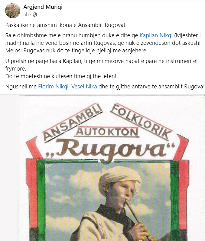 Është ndarë nga jeta ikona e Ansamblit “Rugova”, Kapllan Nikqi,