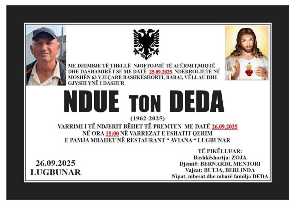 Varrimi i të ndjerit do të bëhet sot në orën 15:00 në varrezat e Qerimit.