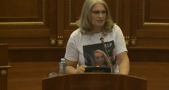Ish deputetja e AAK-së Teuta Haxhiu, është shfaqur në foltore me një bluzë mbi të cilën ishte fotografia e të ndjerës Liridona Ademaj e cila u vra muaj më parë. Vrasja dyshohet se u porosit nga bashkëshorti i saj Naim Murseli.