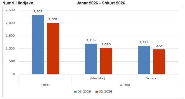 Po ashtu është bërë e ditur se në muajin shkurt 2026 kemi rënie të numrit të lindjeve rreth (13,3%) krahasuar me muajin janar 2026.