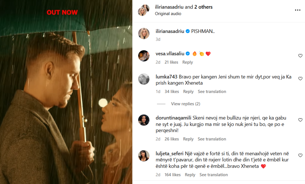 ”Një vajzë e fortë si ti, din të menaxhojë veten në mënyrë t’pavarur, din të nxjerr lotin dhe din t’jetë e ëmbël kur është koha për të qenë e ëmbël…bravo Xheneta”, ka shkruar ajo.