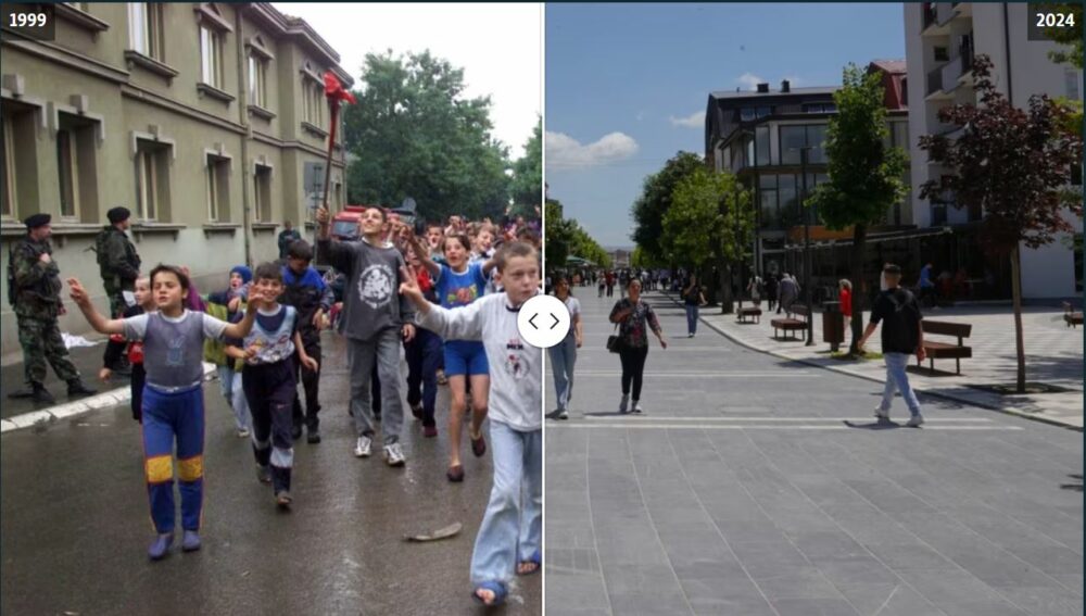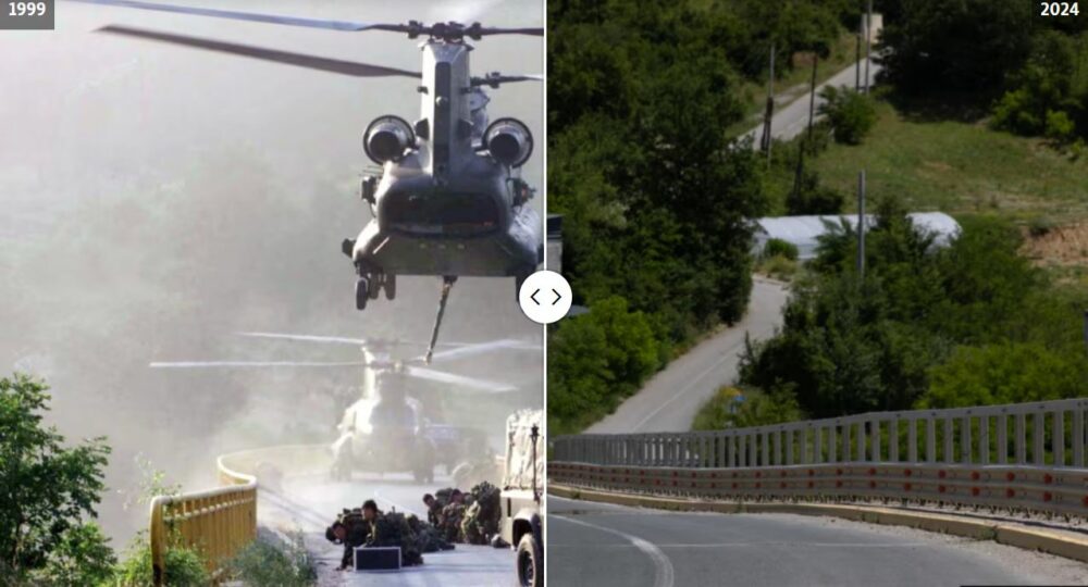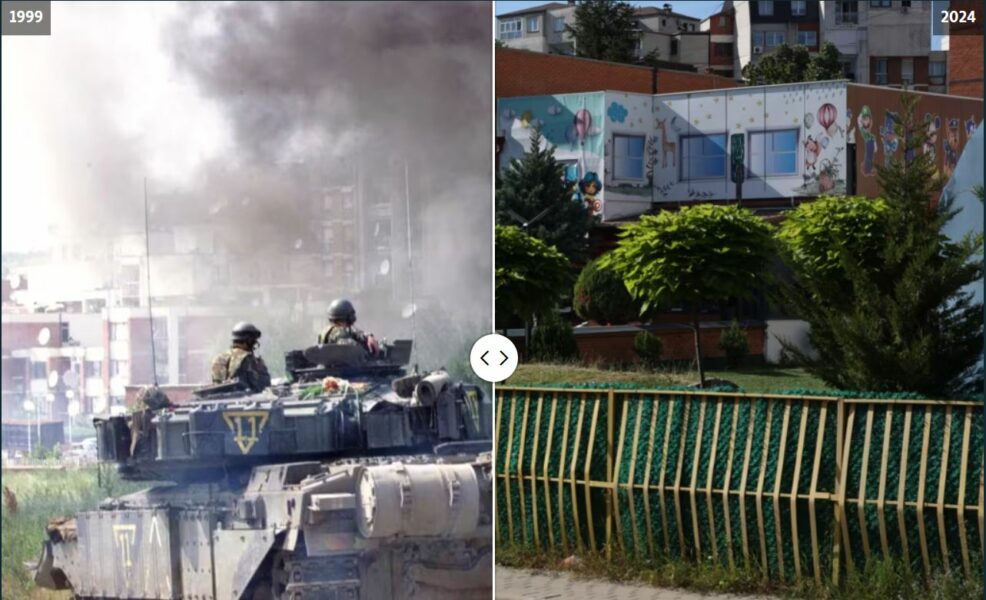 Sot (12 qershor) bëhen 25 vjet nga dita kur forcat paqeruajtëse të NATO-s hynë në Kosovë, duke shënuar fundin e luftës që la më shumë se 13.500 njerëz të vrarë, kryesisht shqiptarë. Mediat botërore, atëkohë, pasqyruan gëzimin e qytetarëve të Kosovës kur ata takonin për herë të parë ushtarët e misionit të KFOR-it. Disa vende që shihen në fotografitë e qershorit 1999 duken ngjashëm edhe sot, por shumica janë transformuar krejtësisht. Por, si duken sot ato lokacione?