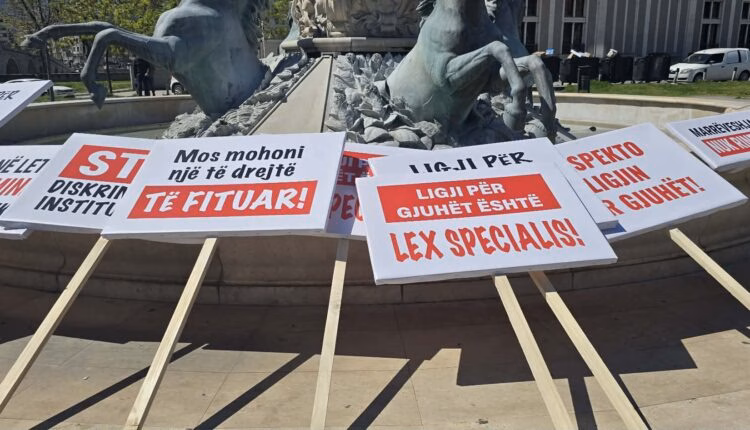 “Ligji në letër, diskriminim në praktikë”, shkruhet në një njërën prej pankartave, teksa një numër i madh kanë marrë pjesë.