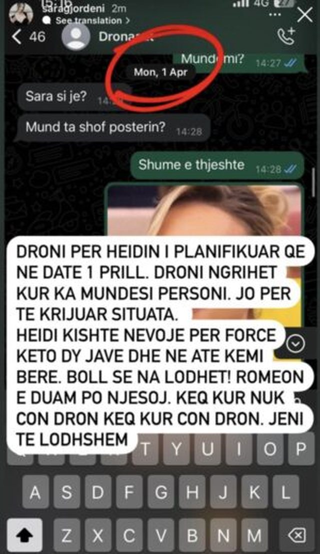Por pasi Sara ndau pamjet e qarkullimit të dronit mbi shtëpi, ka reaguar ashpër ndaj ndjekësve të saj, teksa pretendon se këta të fundit e kanë ‘akuzuar’ se droni është nisur në ambientet e shtëpisë për të bërë ‘lëmsh’ Romeon.