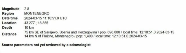 Tërmeti u regjistrua në orën 12:10 në afërsi të Nikshiqit, në një thellësi prej 10 kilometrash, pra 28 kilometra nga Bileça në Bosnje-Hercegovinë. Kujtojmë se një tërmet me magnitudë 5.7 gradë të shkallës Rihter tronditi territorin e Malit të Zi në orën 04:06 të mëngjesit të së enjtes.
