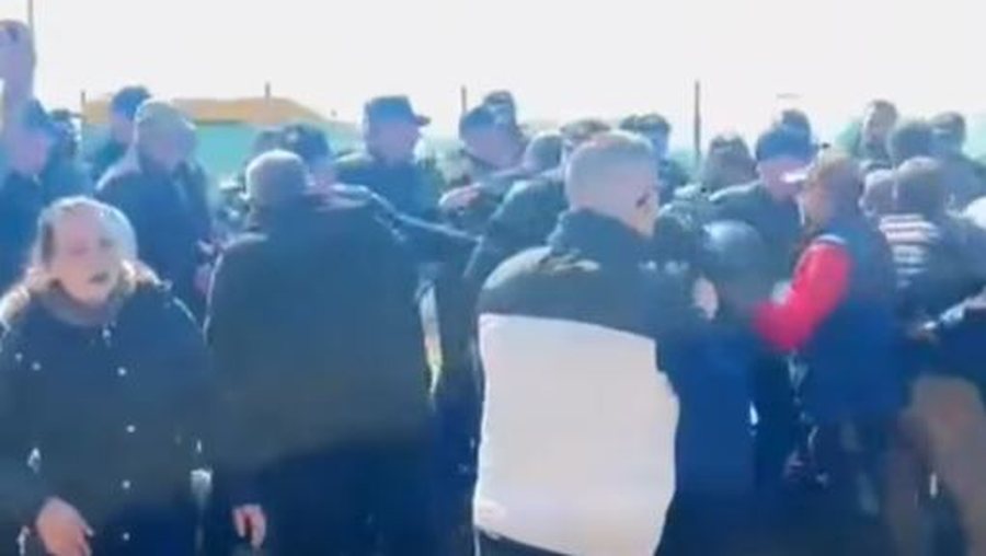 Në pamjet e publikuara nga Portali Veriu Sot, banorët shikohen duke u konfrontuar fizikisht me Policinë e Shtetit, të cilët tentojnë t’i largojnë nga zona.